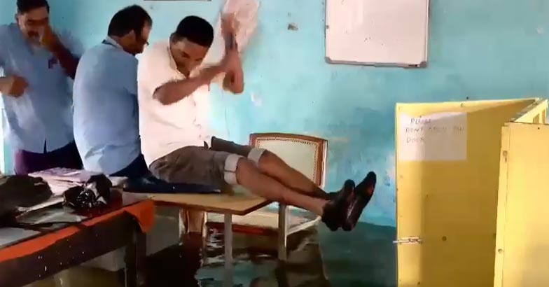 കനത്ത മഴയില് ഓഫിസില് വെള്ളം കയറിയിരുന്നു. ഓഫിസിന് അകത്തേക്ക് വരെ വെള്ളം ഇരച്ചു കയറിയെത്തിയത് ജീവനക്കാര്ക്കും യാത്രക്കാര്ക്കും ഒരുപോലെ ബുദ്ധിമുട്ടായി. ഇതിനിടെയാണ് വീഡിയോ ചിത്രീകരിച്ചത്.