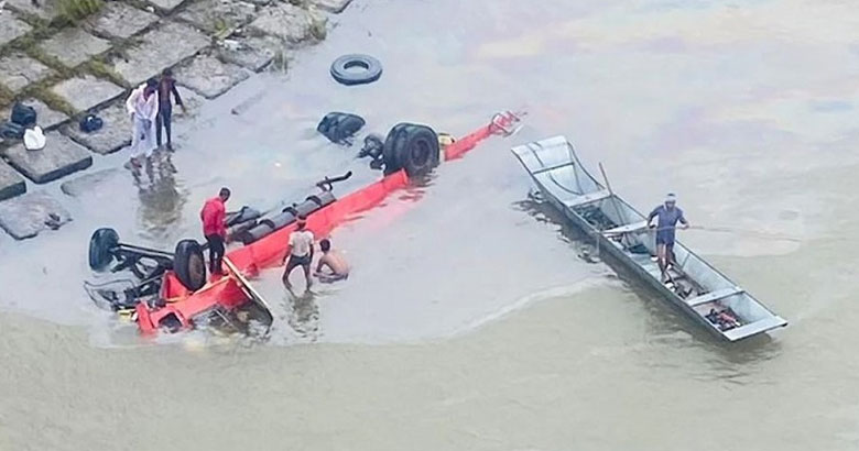 നാല്പ്പതോളം യാത്രക്കാര് ബസിലുണ്ടായിരുന്നതായാണ് വിവരം. 15 യാത്രക്കാരെ രക്ഷപെടുത്തി. ബസ് റോഡില് നിന്ന് തെന്നിമാറി കാല്ഘട്ട് പാലത്തിന്റെ കൈവരി തകര്ത്ത് നദിയിലേക്ക് വീഴുകയായിരുന്നു. ബസ് നദിയില് നിന്ന് പുറത്തെടുത്തു. സംഭവസ്ഥലത്ത് രക്ഷാപ്രവര്ത്തനങ്ങള് പുരോഗമിക്കുകയാണ്. ദുരന്ത നിവാരണ സേന, നാട്ടുകാരുടെ സഹായത്തോടെയാണ് രക്ഷാപ്രവര്ത്തനം നടത്തുന്നത്.