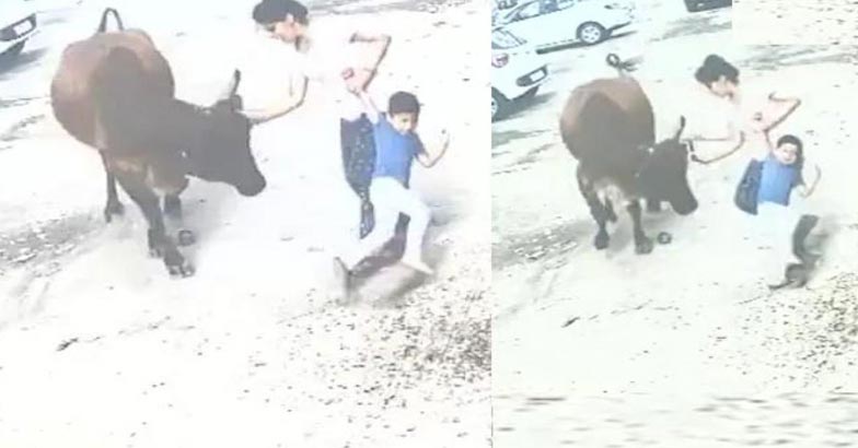માતા સાથે જતા બાળક પાછળ ગાય પડી