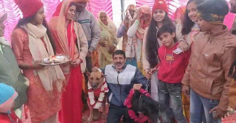 #WATCH | A male dog, Tommy and a female dog, Jaily were married off to each other in UP's Aligarh yesterday; attendees danced to the beats of dhol pic.twitter.com/9NXFkzrgpY