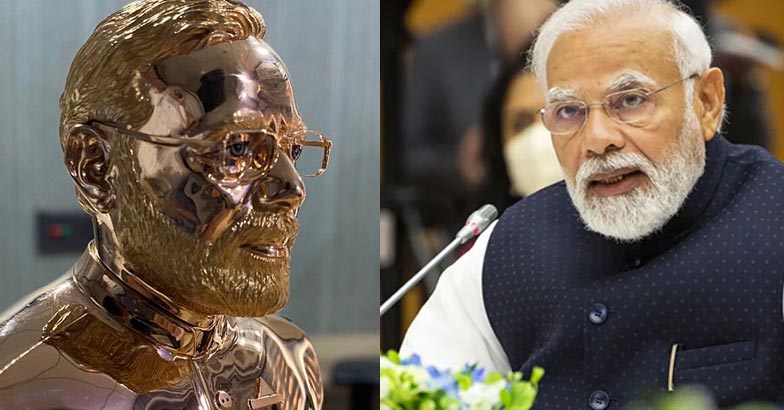 കഴിഞ്ഞ ഡിസംബറിൽ നടന്ന തെരഞ്ഞെടുപ്പിൽ 182 സീറ്റിൽ 156 സീറ്റ് നേടിയാണ് ബിജെപി വിജയ കൊടി പാറിച്ചത്. 20 പേർ 3 മാസം പണിയെടുത്താണ് പ്രതിമ പൂർത്തിയാക്കിയതെന്ന് ജ്വല്ലറി ഉടമയായ രാജസ്ഥാൻ സ്വദേശി ബസന്ത് ബോറ പറയുന്നു. മുൻപ് യുഎസിലെ സ്വാതന്ത്ര്യപ്രതിമയുടെ മാതൃകയും ഇദ്ദേഹം സ്വർണത്തിൽ പണി കഴിപ്പിച്ചിട്ടുണ്ട്. പ്രതിമയുടെ ചിത്രങ്ങൾ ഇപ്പോൾ സോഷ്യൽമീഡിയയിലും തരംഗം സൃഷ്ടിക്കുകയാണ്.