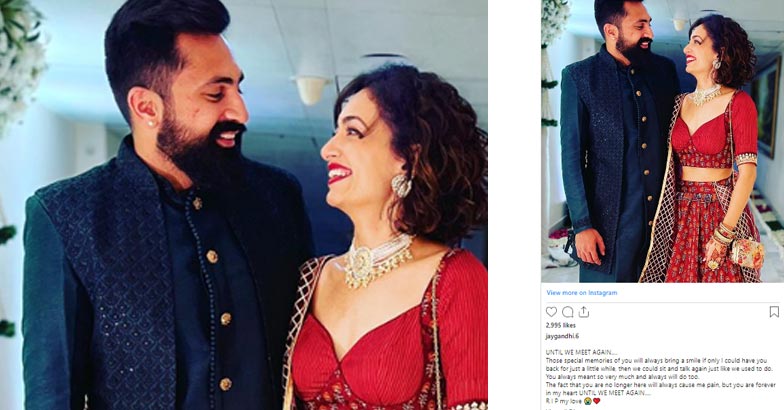 നമ്മള് വീണ്ടും കണ്ടുമുട്ടുന്നത് വരെ. നിന്നെ കുറിച്ചുള്ള ഓര്മകള് എന്നും പുഞ്ചിരി സമ്മാനിക്കും, കുറച്ച് സമയത്തേയ്ക്ക് എനിക്ക് നിന്നെ തിരികെ ലഭിക്കുമെങ്കില്, നമ്മള് പതിവുപോലെ വീണ്ടും ഇരുന്ന് സംസാരിക്കാം. നീ ഇനി ഇവിടെ ഇല്ലെന്നത് തന്നെ എപ്പോഴും വേദനിപ്പിക്കും, പക്ഷേ നീ എന്നും എന്റെ ഹൃദയത്തില് ഉണ്ട് എന്നും ജയ് ഗാന്ധി എഴുതിയിരിക്കുന്നു. നമ്മള് വീണ്ടും കണ്ടുമുട്ടുന്നതു വരെയെന്ന് ജയ് ഗാന്ധി വീണ്ടും എഴുതിയാണ് കുറിപ്പ് അവസാനിപ്പിക്കുന്നത്.