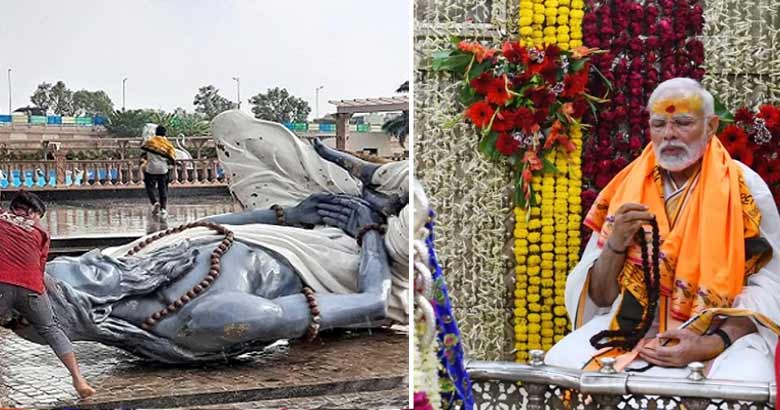ഉജ്ജയ്നിലെ മഹാകാൽ ക്ഷേത്ര ഇടനാഴിയിലാണ് ഏകദേശം 419 കോടി ചെലവിട്ട് ഏഴ് പ്രതിമകൾ സ്ഥാപിച്ചത്. ഇതിൽ ആറെണ്ണമാണ് തകർന്നത്. പ്രതിമ നിർമാണത്തിൽ ക്രമക്കേട് നടന്നതായി ആരോപണം ഉയർന്നതോടെയാണ് കോൺഗ്രസ് പ്രതിഷേധം കടുപ്പിച്ചത്.