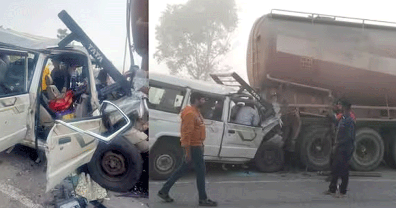 കനത്ത മൂടല് മഞ്ഞ് മൂലം ഡ്രൈവര്ക്ക് റോഡ് കാണാതായതാകാം അപകട കാരണമെന്നാണ് പ്രാഥമിക വിവരം. കാര് ടാങ്കര് ലോറിയുടെ പിന്നിലേക്ക് ഇടിച്ച് കയറിയ നിലയിലാണ്. ജോലിക്ക് പോകുന്ന ആളുകളുമായി വന്ന വാഹനമാണ് അപകടത്തില്പ്പെട്ടത്.
