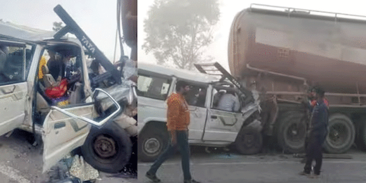 കനത്ത മൂടല് മഞ്ഞ് മൂലം ഡ്രൈവര്ക്ക് റോഡ് കാണാതായതാകാം അപകട കാരണമെന്നാണ് പ്രാഥമിക വിവരം. കാര് ടാങ്കര് ലോറിയുടെ പിന്നിലേക്ക് ഇടിച്ച് കയറിയ നിലയിലാണ്. ജോലിക്ക് പോകുന്ന ആളുകളുമായി വന്ന വാഹനമാണ് അപകടത്തില്പ്പെട്ടത്.