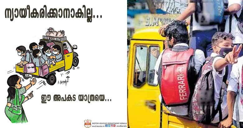 അതേസമയം, ഡ്രൈവറുടേത് നിയമലംഘനമാണെന്നും അപകടകരമായി വിദ്യാർത്ഥികളെ വാഹനത്തിൽ കയറ്റിയത് ശിക്ഷാർഹമായ കുറ്റമാണെന്നുമാണ് ഫേസ്ബുക്ക് കുറിപ്പിലൂടെ വകുപ്പ് വിശദീകരിക്കുന്നത്.