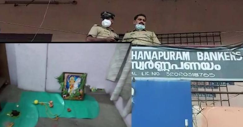 സ്ഥാപനത്തിനുള്ളില് ദൈവത്തിന്റെ ഫോട്ടോയും ശൂലവും നാരങ്ങയും വച്ച് വിളക്ക് കത്തിച്ച് പൂജ നടത്തിയതായി സംശയിക്കുന്നുണ്ട്. ബാങ്കിനുള്ളില് നിന്ന് ഇത്തരം സാധനങ്ങള് പോലീസ് കണ്ടെടുത്തു. മാത്രമല്ല, മുറിയില് മുറിച്ച തലമുടിയുടെ ഭാഗങ്ങളും വിതറിയിട്ടുണ്ട്. സംഭവത്തില് പോലീസ് അന്വേഷണം നടത്തി വരികയാണ്.