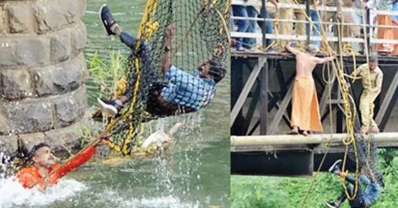 ശേഷം, പോലീസും അഗ്നിരക്ഷാസേനയും എത്തി രണ്ട് മണിക്കൂർ നേരത്തെ പരിശ്രമം കൊണ്ടാണ് യുവാവിനെ കരയ്ക്ക് കയറ്റിയത്. പുഴയിൽ അതിശക്തമായ അടിയൊഴുക്ക് ഉണ്ടായിരുന്നു. ഇതിനിടെ പ്രാണരക്ഷാർഥം പാലത്തിന്റെ കോൺക്രീറ്റ് തൂണിൽ അള്ളിപ്പിടിച്ചുകിടന്നിരുന്നു. പോലീസുകാർ ഓടിയെത്തിയെങ്കിലും ഒഴുക്ക് ശക്തമായതിനാൽ ഇറങ്ങാൻ സാധിച്ചില്ല. തുടർന്ന് അഗ്നിരക്ഷാ സേനയെ വിളിച്ചു വരുത്തി.