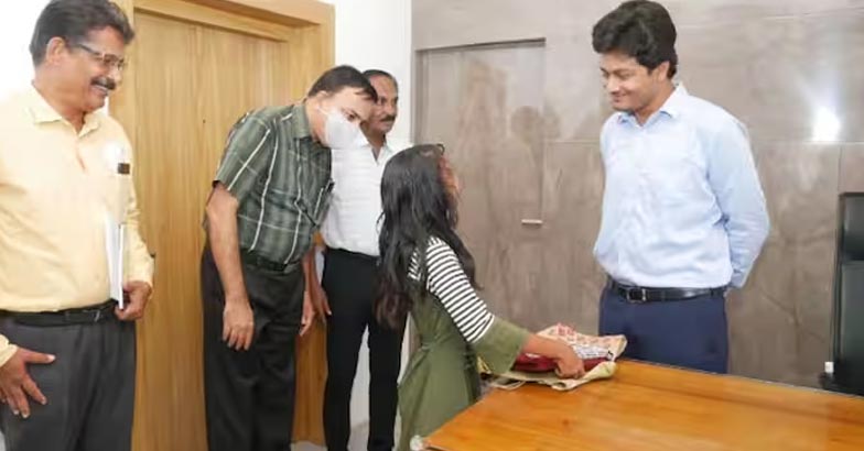 പരാതിയുമായി എത്തിയ പെണ്കുട്ടിയെ കലക്ടര് സ്വീകരിച്ചു. കാര്യം അറിഞ്ഞപ്പോള് വിദ്യാര്ഥിനിക്ക് ജില്ലാ കളക്ടര് വിആര് കൃഷ്ണ തേജ പുതിയ യൂണിഫോം തന്നെ സമ്മാനിച്ച് യാത്രയാക്കി.