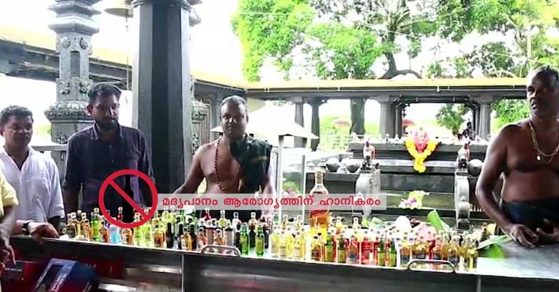 ഇങ്ങനെ കഴിഞ്ഞ ദിവസം ഒരു ഭക്തന് എത്തിച്ചത് നൂറ്റിയൊന്നു കുപ്പി വിദേശമദ്യമാണ്. മഹാഭാരതത്തിലെ കൗരവ പ്രധാനിയായ ദുര്യോധന മഹാരാജാവാണ് ക്ഷേത്രത്തിലെ മുഖ്യ ആരാധനാമൂര്ത്തി.