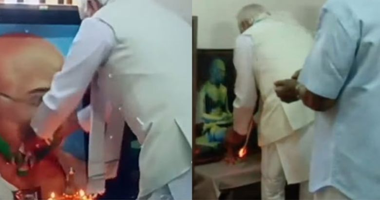 അതിനിടെ സമീപത്ത് കത്തിച്ചു വെച്ച നിലവിളക്കിൽ നിന്ന് ഗവർണറുടെ കഴുത്തിൽ കിടന്ന ഷാളിലേക്ക് തീ പടരുകയായിരുന്നു.