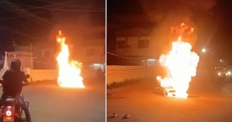 വലിയ പരിക്കേൽക്കാതെ രക്ഷപ്പെട്ടു. വീണ്ടും ബൈക്ക് ഓൺ ചെയ്തപ്പോൾ ടാങ്കിൽ നിന്ന് ചോർന്ന ഇന്ധനത്തിന് തീ പിടിക്കുകയായിരുന്നു.