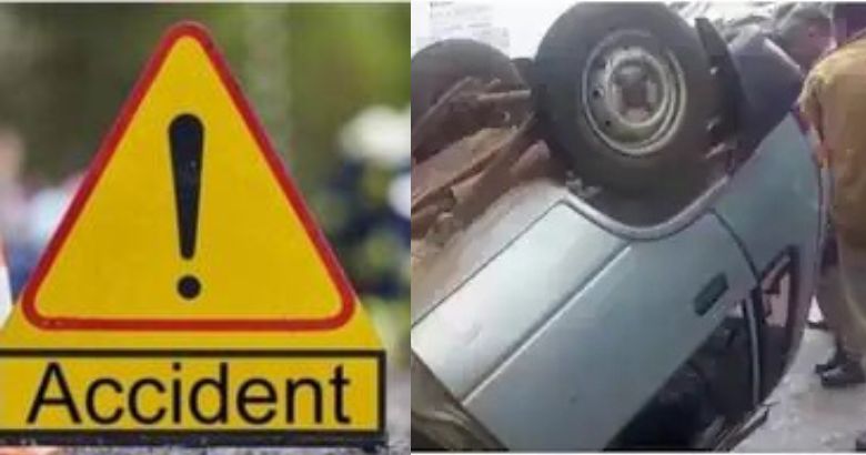 അപകടം. ബൈക്കിലിടിച്ച കാർ നിയന്ത്രണം വിട്ട് തലകീഴായി മറിയുകയായിരുന്നു.