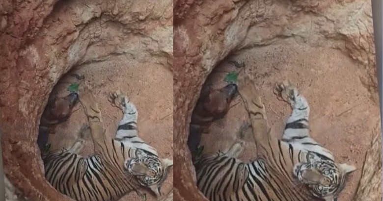 ഇന്ന് പുലർച്ചെയാണ് കടുവയെ കുഴിയിൽ കണ്ടത്. കടുവയ്ക്കൊപ്പം കുഴിയിൽ ഒരു നായയും ഉണ്ടായിരുന്നു. നായയെ വേട്ടയാടുന്നതിനിടെയിൽ കുഴിയിൽ വീണതാകാമെന്നാണ് പ്രാഥമിക നിഗമനം.
