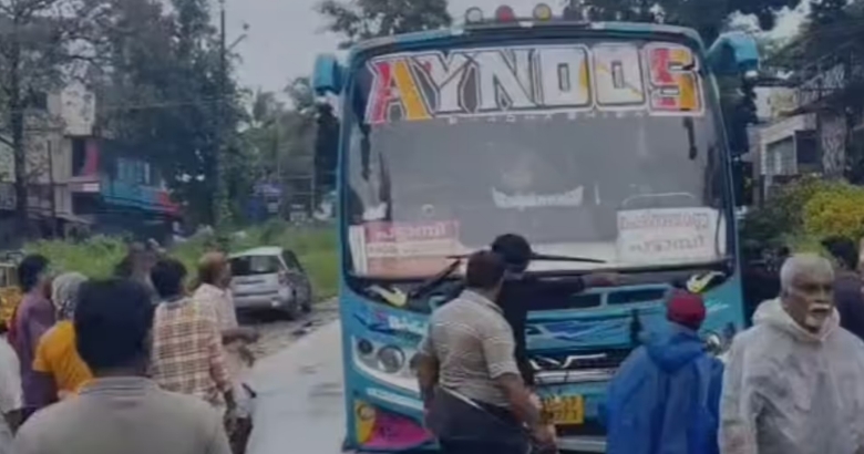 ബസ് അമിതവേഗതയിലാണെന്ന് ആരോപിച്ചായിരുന്നു നാട്ടുകാർ ബസ് തടഞ്ഞത്.