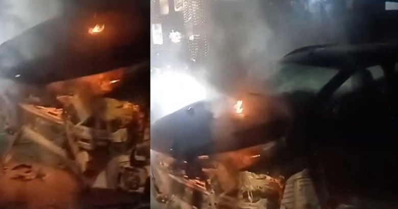 തിരികെ വരുന്ന വഴി മുന്നിലുണ്ടായിരുന്ന മറ്റൊരു കാറിനെ മറികടക്കുന്നതിനിടെ ഡിവൈഡറില് ഇടിച്ചു. തുടര്ന്ന് കാറില് നിന്നും പുക ഉയരുകയും തീപ്പിടിക്കുകയും ചെയ്തു.