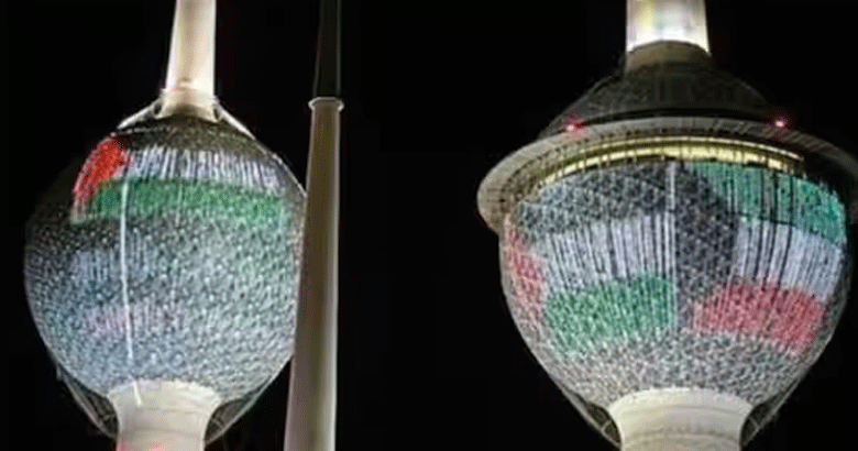 ഗാസയിലും പലസ്തീന് നഗരങ്ങളിലും നടന്ന അധിനിവേശത്തിലും നടത്തിയ ആക്രമണങ്ങളിലും പ്രതിഷേധിച്ചാണ് കുവൈത്ത് ടവറുകളില് പലസ്തീന് പതാകകള് ഉയര്ന്നത്.