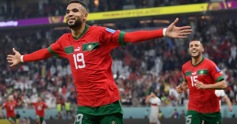 മത്സരത്തില് പോര്ച്ചുഗല് ആധിപത്യം പുലര്ത്തുന്നതിനിടെ, ആദ്യപകുതി അവസാനിക്കാന് മിനിറ്റുകള് മാത്രം ശേഷിക്കെയാണ് മൊറോക്കോ ലീഡെടുത്തത്. മത്സരത്തില് ചില സുവര്ണാവസരങ്ങള് പാഴാക്കിയ യൂസഫ് എന് നെസിറി തന്നെ മൊറോക്കോയ്ക്കായി ലക്ഷ്യം കണ്ടു. ഇടതുവിങ്ങില്നിന്ന് യഹിയ എല് ഇദ്രിസി ഉയര്ത്തി നല്കിയ ക്രോസിന് തലവച്ചാണ് നെസിറി മൊറോക്കോയ്ക്ക് ലീഡ് സമ്മാനിച്ചത്. ഇദ്രിസിയുടെ ക്രോസിന് കണക്കാക്കി മുന്നോട്ടുകയറിവന്ന ഗോള്കീപ്പര് ഡീഗോ കോസ്റ്റയെ മറികടന്ന് ഉയര്ന്നുചാടിയ നെസിറിയുടെ ഹെഡര് ഒന്നു നിലത്തുകുത്തി വലയില് കയറി. സ്കോര് 10.