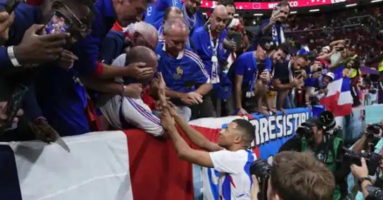 ദോഹ: ലോകകപ്പില് മൊറോക്കോയ്ക്ക് എതിരായ സെമി ഫൈനലിന് മുമ്പ് പരിശീലനത്തിനിടെ തന്റെ ഷോട്ട് കൊണ്ട് മുഖത്ത് പരിക്കേറ്റ ആരാധകനെ ആശ്വസിപ്പിച്ച് ഫ്രഞ്ച് സൂപ്പര് താരം കിലിയന് എംബാപ്പെ. കളിക്കളത്തിലെ അഹങ്കാരി എന്ന ചീത്തപ്പേരുണ്ട് എംബാപ്പെയ്ക്ക്. അതാണ് ഈ സെമിയിലൂടെ താരം മറികടന്നത്.