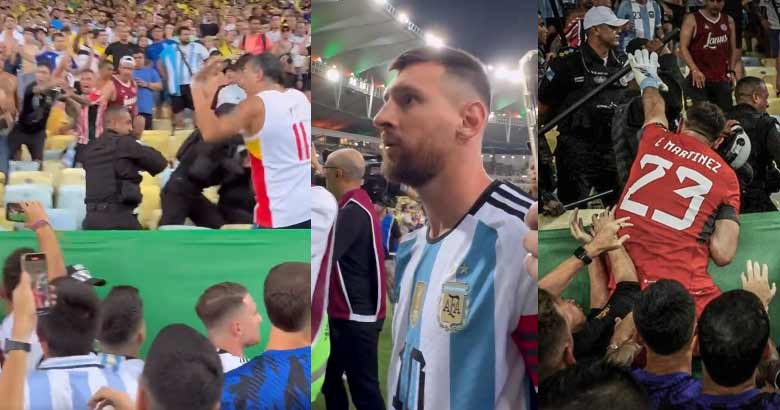 ഇരുരാജ്യങ്ങളും ദേശീയ ഗാനം ചൊല്ലുന്നതിനായി അണിനിരന്നപ്പോഴാണ് ഗാലറിയിൽ സംഘർഷമുണ്ടായത്. ഇതോടെ പോലീസ് കടുത്ത ലാത്തിച്ചാർജ് നടത്തിയതോടെയാണ് അർജന്റീന ആരാധകർക്ക് പരിക്കേറ്റത്. തങ്ങളുടെ ആരാധകർക്ക് പരിക്കേറ്റിട്ടും പോലീസ് മർദ്ദനം തുടർന്നതോടെ മെസിയും എമിലിയാനോ മാർടിനസും ഉൾപ്പടെയുള്ളവർ ഇടപെടൽ നടത്തി.